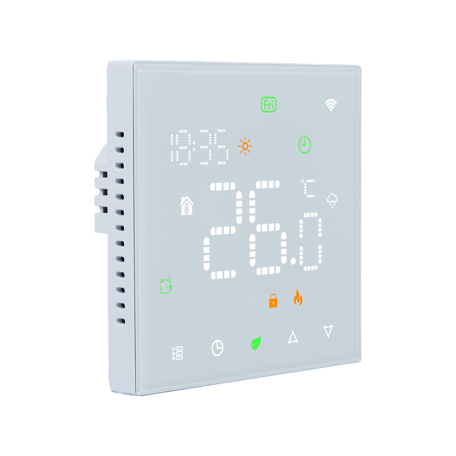 * Weekly Programmable: The thermostat supports different temperature setting accordingly with 6 time-modes daily.